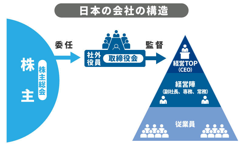 たとえば、富士通の株主総会では経営陣が株主から罵倒されていて、経営陣が謝っている例を挙げましたが、この光景からも株主は圧倒的な権限を持っていることが分かります。いち社員が経営陣に罵倒しようものならすぐにクビ一直線になる一方で、株主は経営陣を謝らせる圧倒的な権限を持っているというわけです。