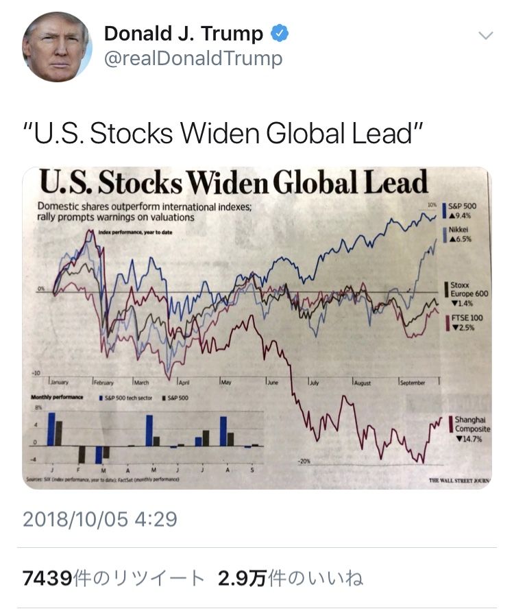 NYダウが現在進行形で過去最高値を更新し続けている一方で、上海総合指数はアメリカの関税強化策になす術が無く、2015年の5000ポイントから今は2000ポイント台まで大暴落しています。