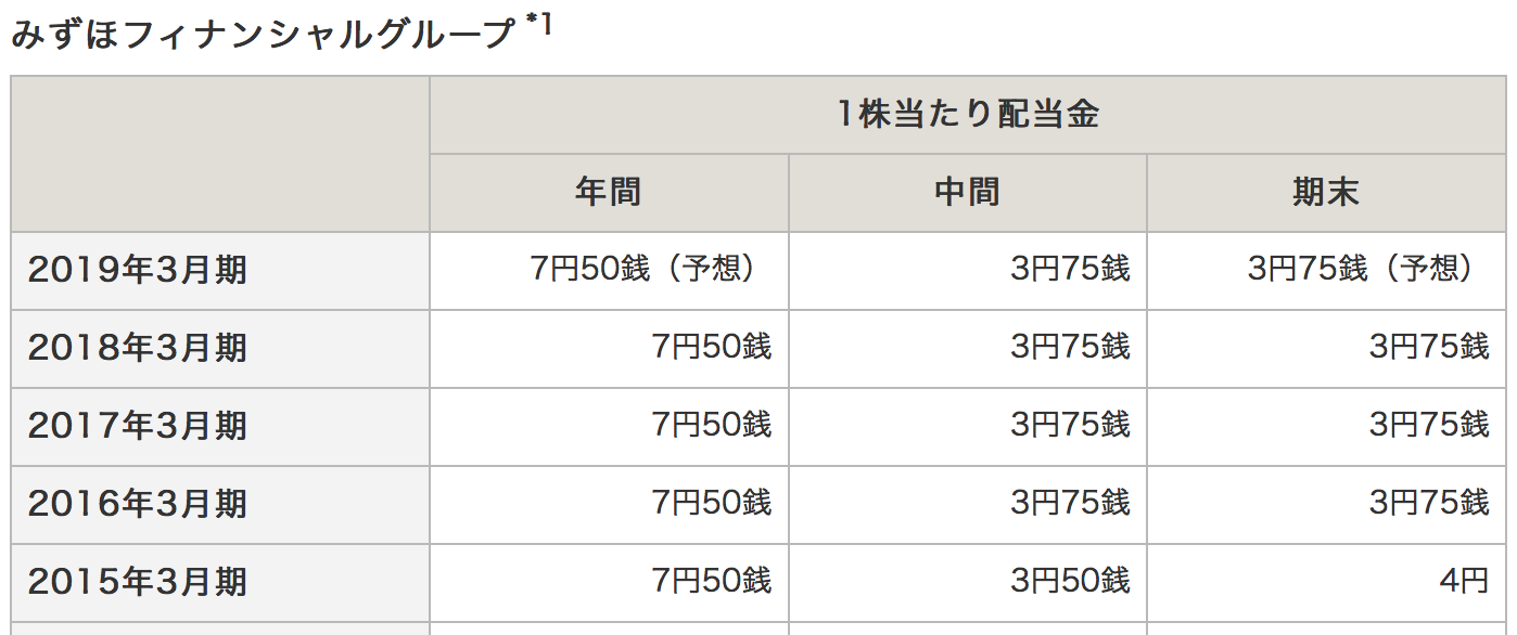 みずほ銀行は1株200円、毎年7.5円が貰える