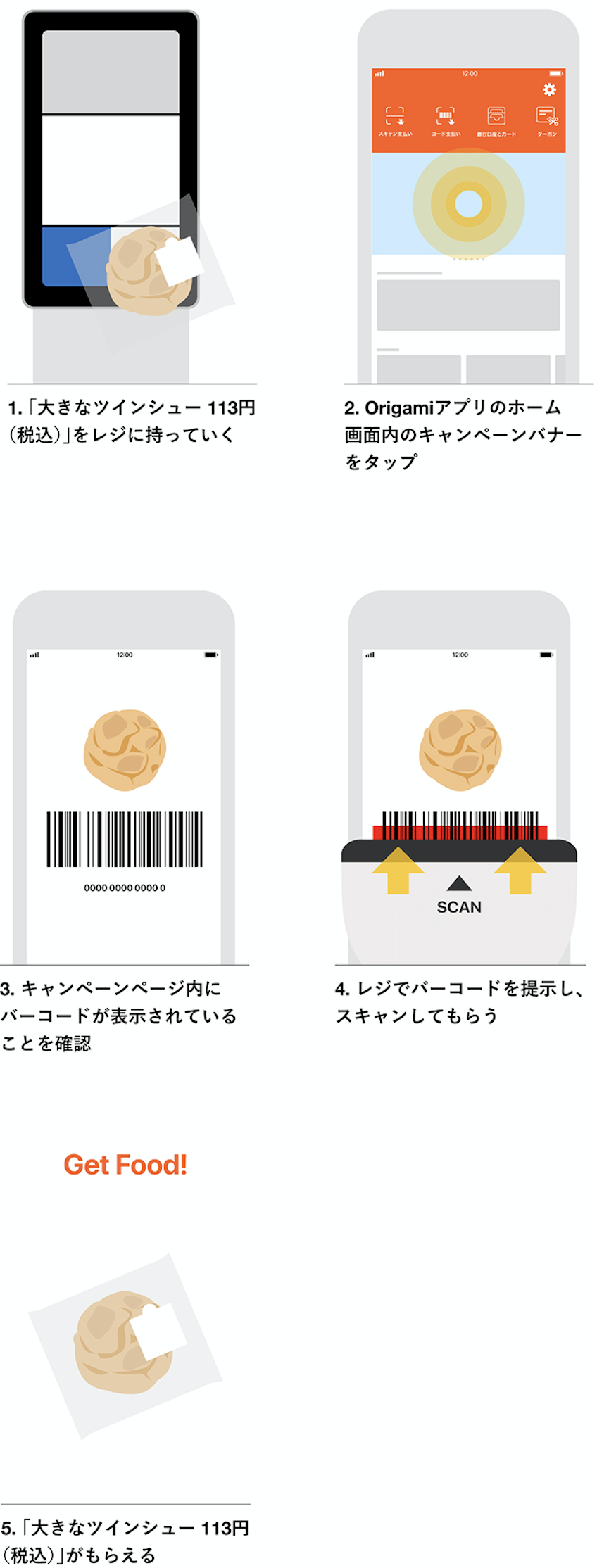 貰う方法は、Origami PayをApp StoreやGoogle Playでダウンロードして利用登録を行い、ローソンのレジでスマホに表示されたバーコードを店員に見せるだけ。