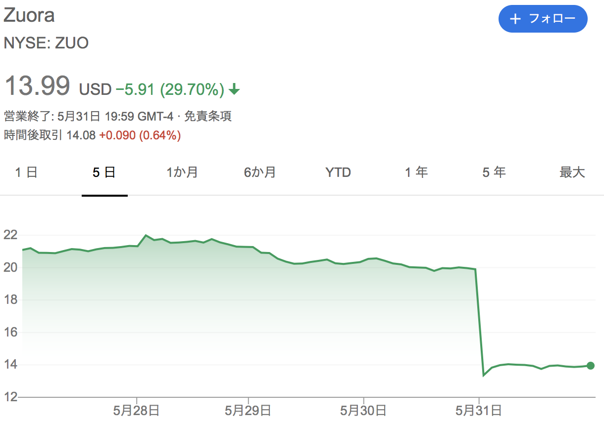 同社の第1四半期の決算発表では、総売上成長率が減速、成長鈍化が顕著であることが浮き彫りになった結果、株価は30%近い大暴落となった。