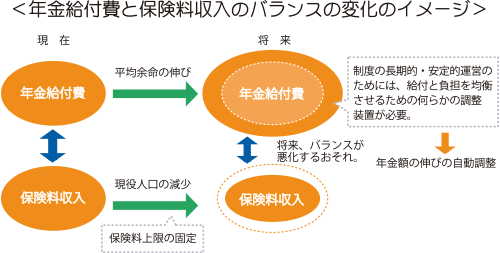この頃、マクロ経済スライドと呼ばれる、物価や賃金上昇などのインフレなどの情勢に合わせて、年金支給額を自動的に調整する仕組みを採用しました。