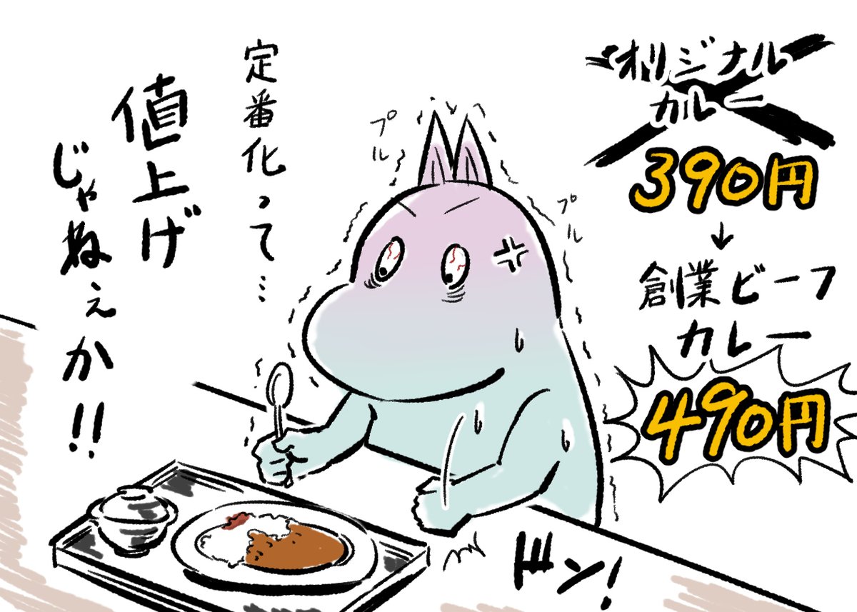 オリジナルカレーは390円で、創業ビーフカレーは490円だったこともあり、SNS上では「実質的な値上げでは?」という批判が相次いだ。