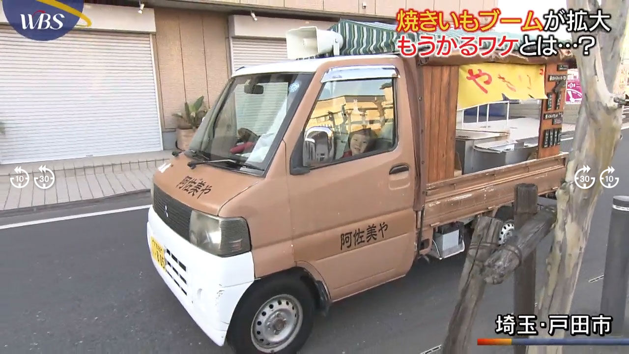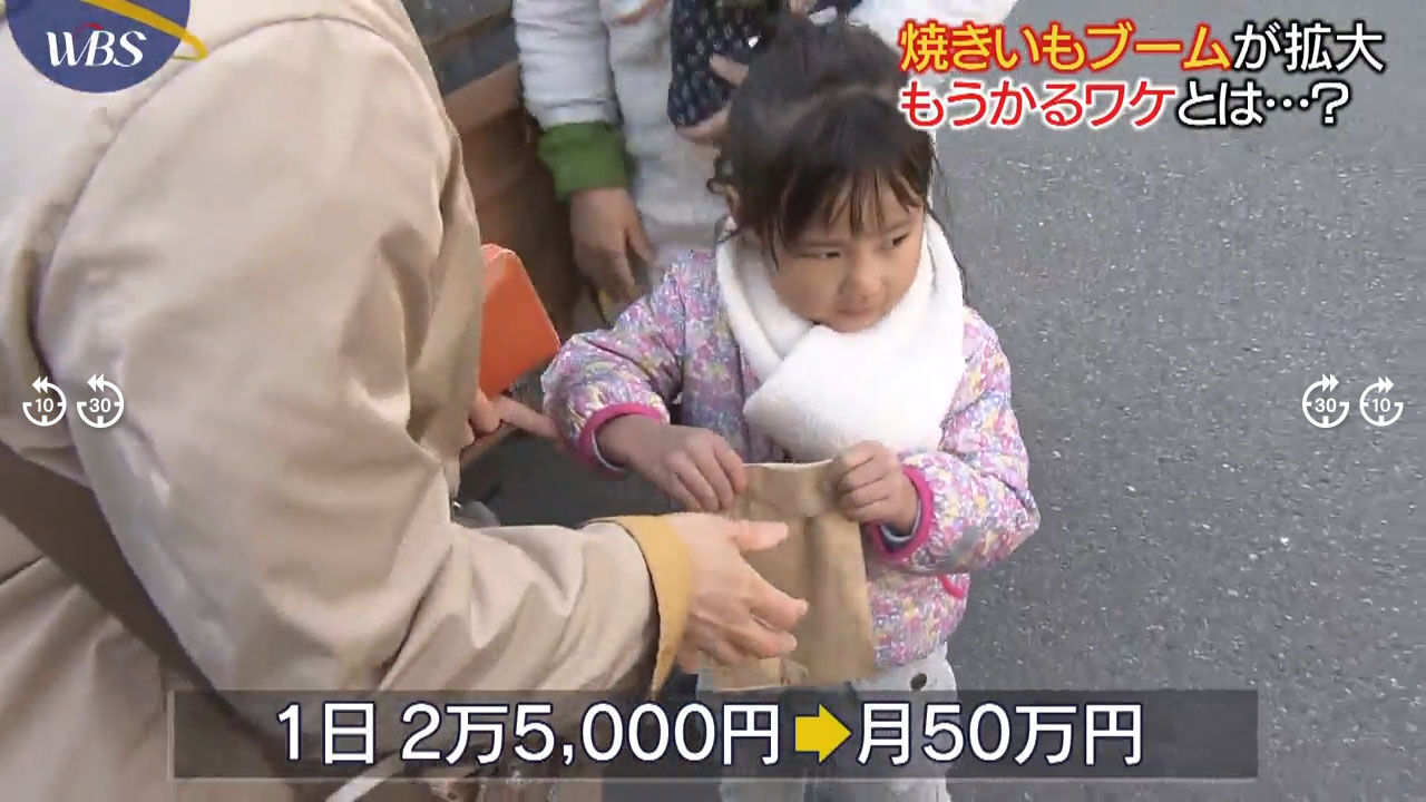 WBSによれば、移動販売の焼きいも店は1日およそ100本を売り上げる人気ぶりで、1本300~400円、利益率は良い芋を使っていても売価の半分くらいだと言います。