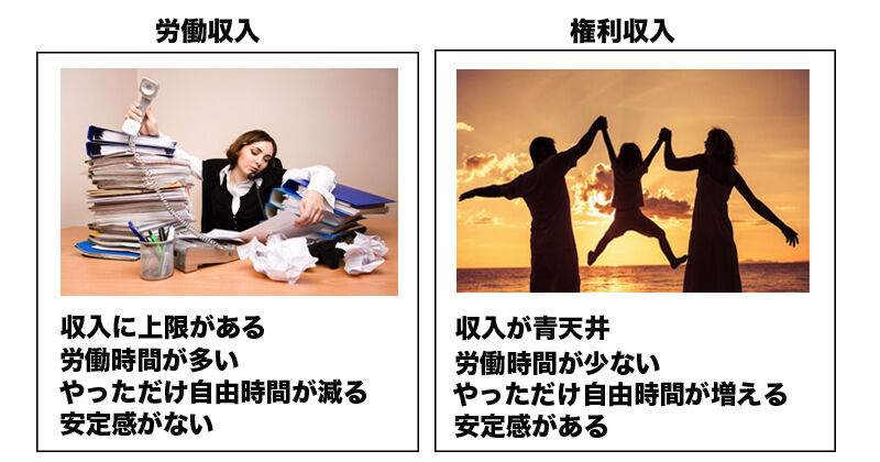 このように、金持ちになるには漫画、音楽、本の印税などのように、権利収入を得る必要があります。