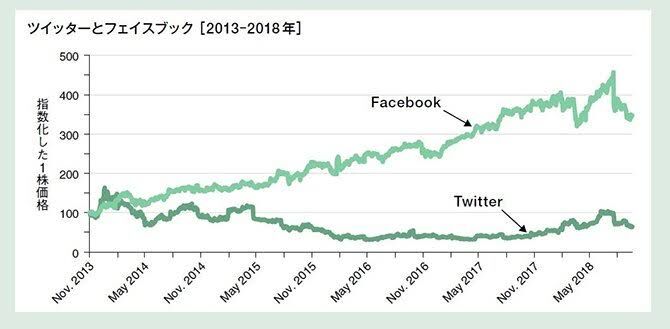一方、Twitter社は万年赤字で株価も上場時から2分の1になっている。