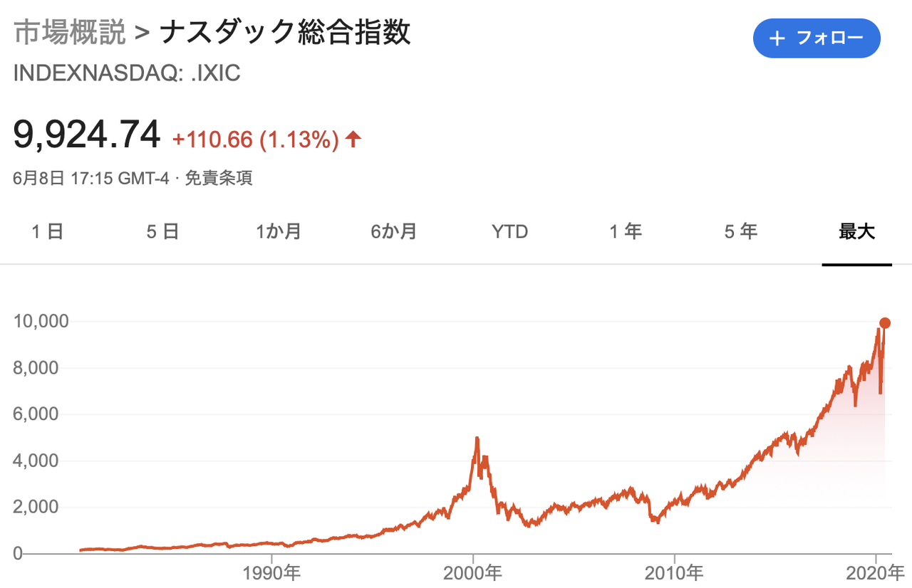8日の取引にて、コロナショックで大暴落していたナスダック指数が史上最高値を更新しました。