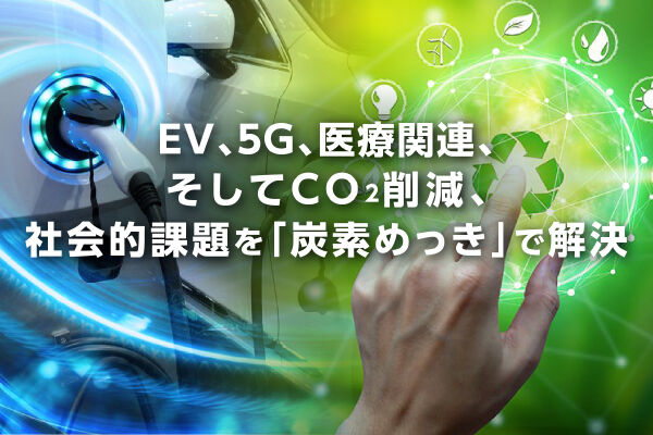 「炭素めっき」は、金属表面に炭素皮膜を形成させることで、炭素繊維とほぼ同等の特性を付与するとともに、優れた電気伝導性を活かして、高性能エネルギー変換デバイスに利用することを可能にする革新的な技術です。