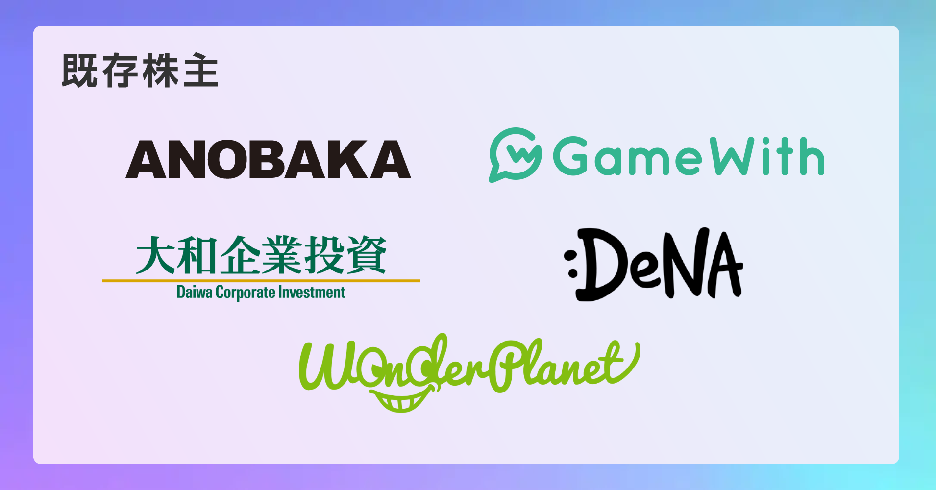 GS2社は以下の事業会社・ベンチャーキャピタルから出資を受けています。