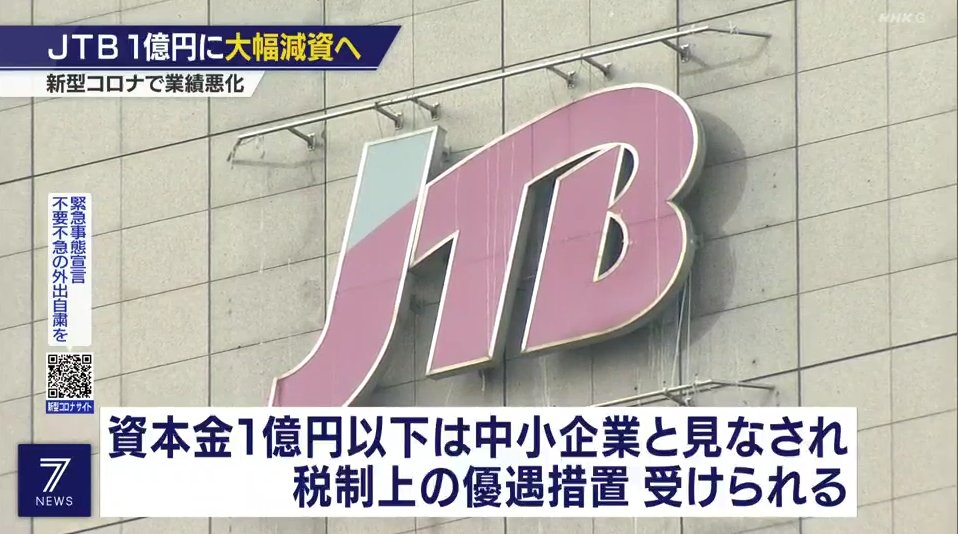 資本金を取り崩すことで、発生が見込まれる損失に対応する。資本金が1億円以下の企業は税制上中小企業とみなされ、税負担が軽くなる。観光需要が戻るには時間がかかるため、中期的な負担軽減を享受する狙いもあるとみられる。https://www.nikkei.com/article/DGXZQODZ230T70T20C21A2000000/ネットの反応ワイのJTB勤務のトッモ曰くボーナスなかったらしい給料安めでボーナスガッツリのスタイルだったからめっちゃ厳しいらしいわこれなんの意味があるの?節税JTBは節税の対価に社会的信用を放棄してるんやで敵対的買収仕掛けられたら死ぬけどなまあ既に死に体の旅行会社なんて買う奴おらんけど超人気企業が一瞬で落ちぶれるんやからコロナ恐ろしい倒産待ったなしwHISの株価明日影響受けるなこれその頃、HISはそば屋になっていた