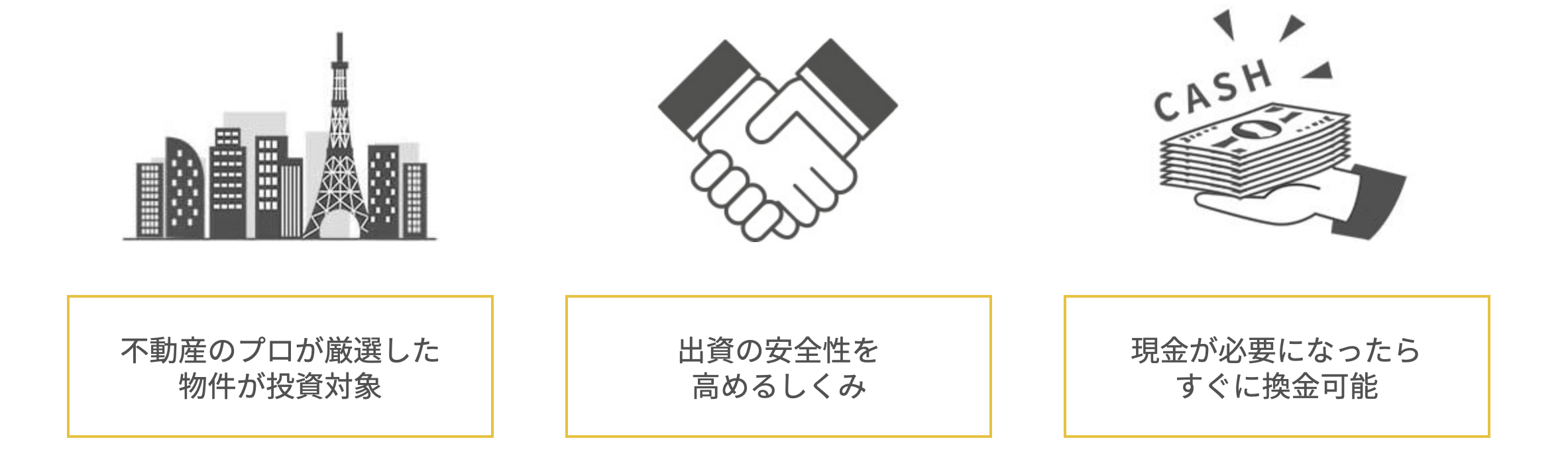 本サービスの特徴は、最短3ヶ月から手軽に不動産投資ができるなので、「長期運用が不安、短期でサクッと投資したい」と考えている投資家の方には打って付けのサービスと言えます。