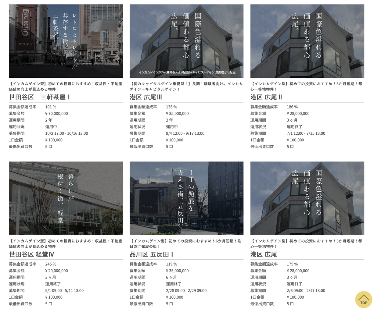 上記のファンド以外にも、既にいくつかのファンドをリリースしており、募集金額達成率100%以上と大人気のうちに募集完了しています。