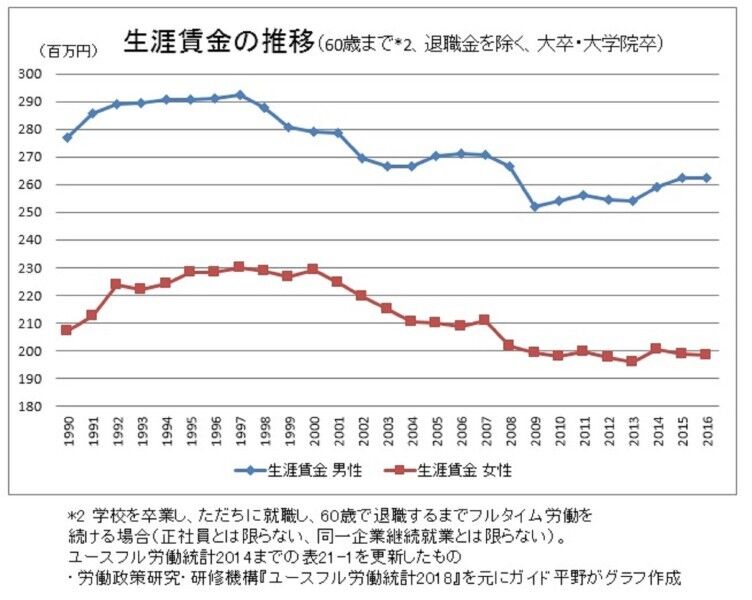 日本人はいつになったら90年代の生涯賃金に追いつけるんや?