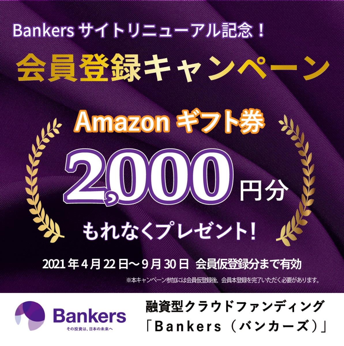 融資型クラウドファンディングのBankers(バンカーズ)では、サイトリニューアルを記念して、無料口座開設キャンペーンを実施してます。