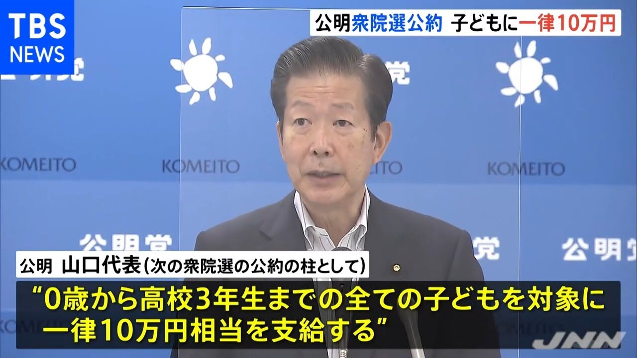0歳から高校生に一律10万円給付 公明が衆院選公約に