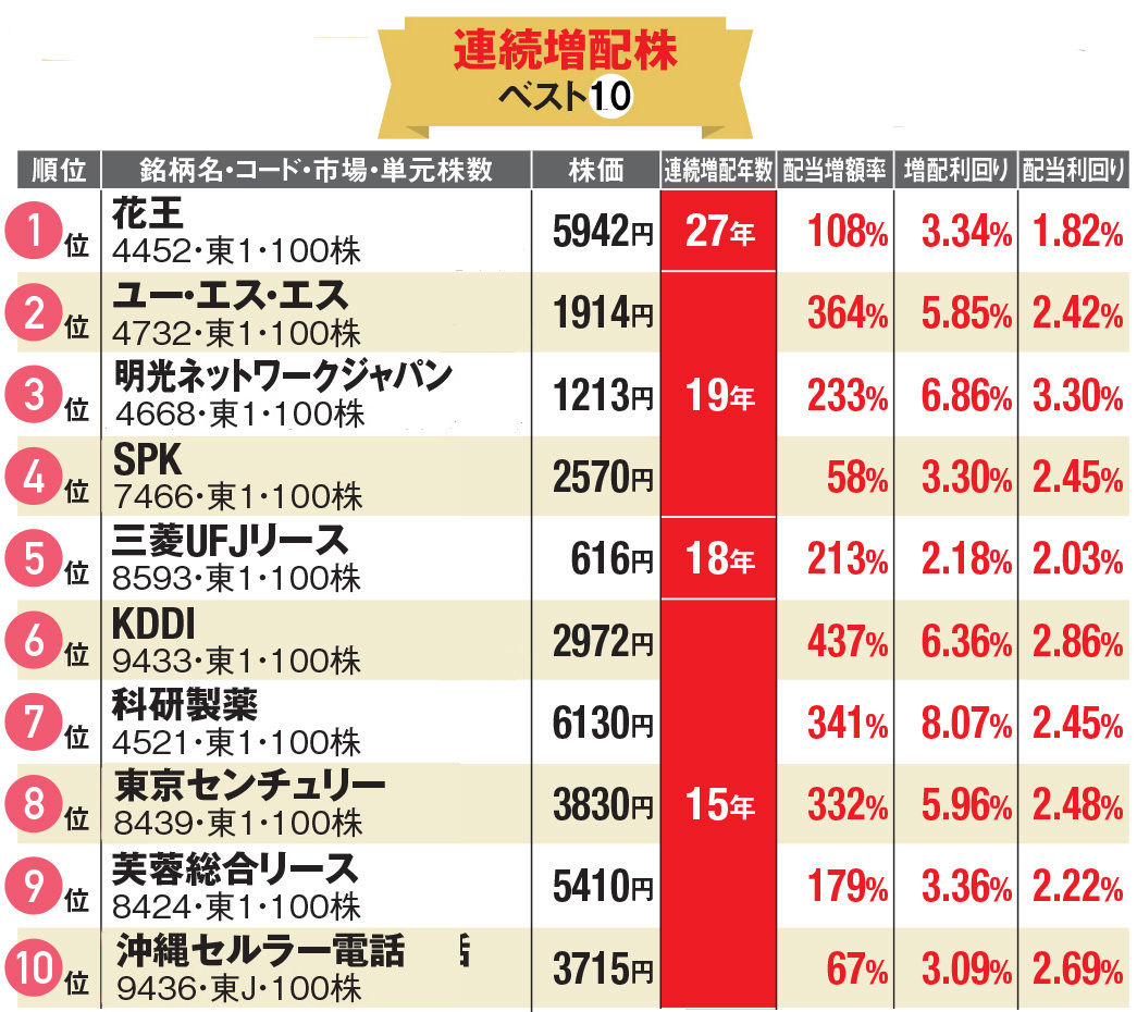 日本株の増配銘柄は花王がトップですが、それでもわずか27年です。