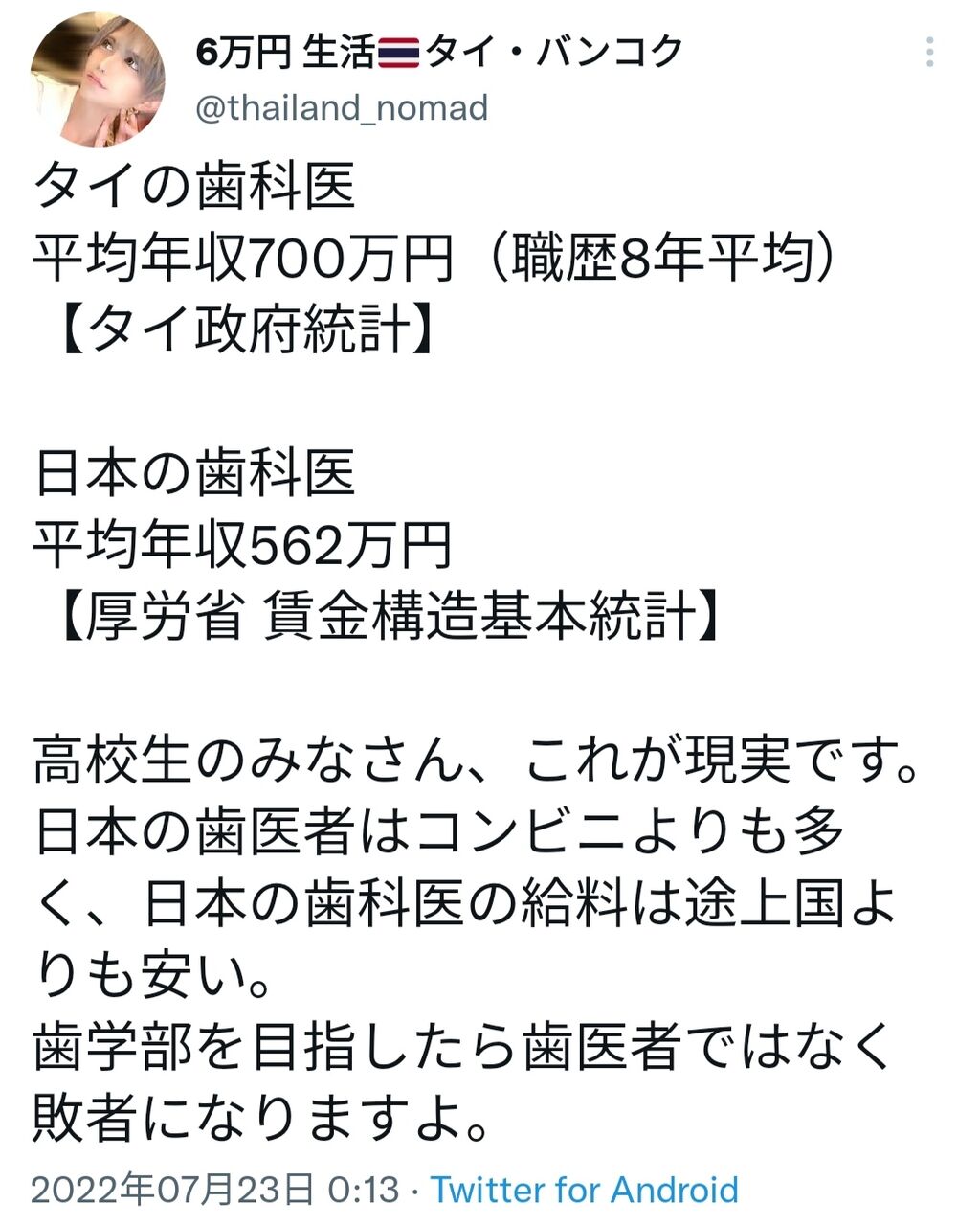 ちなみにアメリカの歯医者の平均年収は2000万円な模様