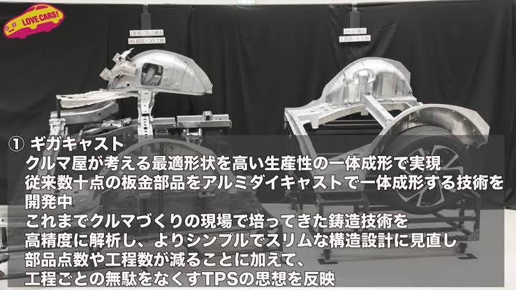 大きな部品を一体的に鋳造できるので、従来必要だった数千点の部品が不要になるらしい