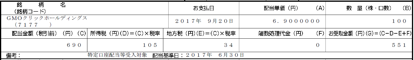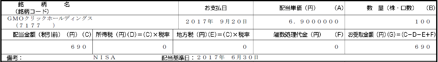 [7177]GMOクリックホールディングスより2017年四半期配当金をいただきました。