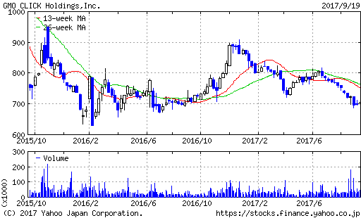 上場以来、株価が低迷していますが、これは親会社のGMOインターネットが同社の筆頭株主で98.4%を保有しており、定期的にその株を市場に売り出ししていることが投資家心理を悪化させ、下落を辿る原因となっています。