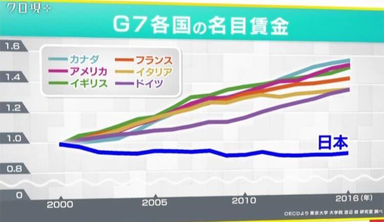 データを確認すると、日本人の"手取り"は、年々減少の一途を辿り、先進国でもかなり悲惨な状況に陥っていることがわかります。