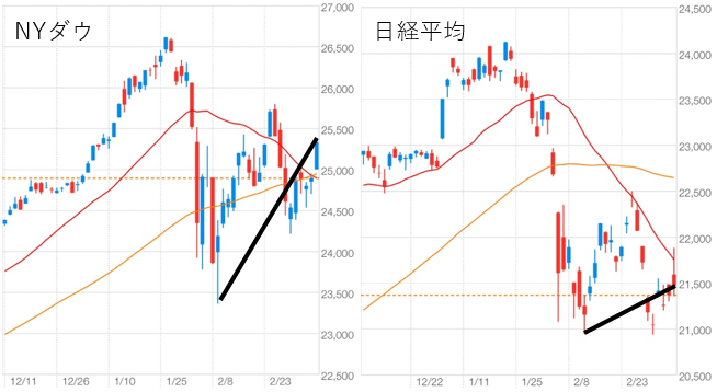 今回の暴落では日本単体で悪材料が出たわけではありません。にも関わらず、下落時のスピードは日本株が世界で最も速く、そして下げ幅も大きかったのです。現に、チャートを確認しても日本株は大きく窓を開けて下落していたことがわかりますので、アメリカよりも強烈な売りがあったことがわかります。